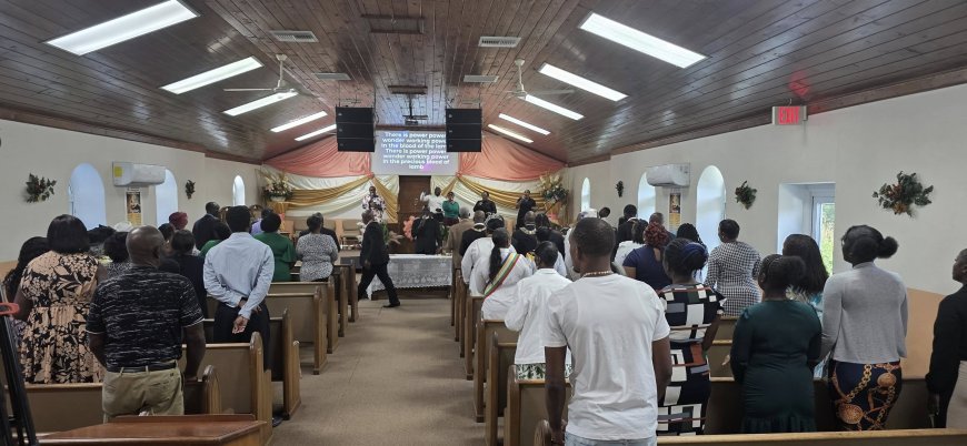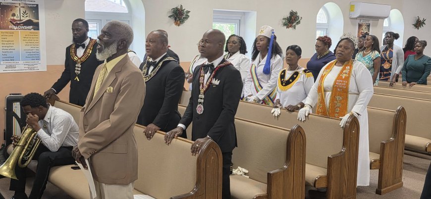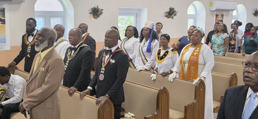 King David and Emerald Star Lodge Chapter 944 visited Palestine Union Baptist Church in Forest, Exuma, sharing fellowship and community engagement.